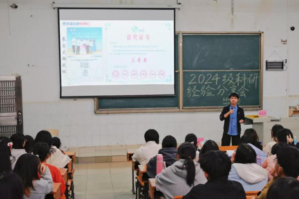 本网讯(通讯员/冯煽梅 责编/刘瑞雪)为提升同学们的科研能力和创新精神,2024年12月17日晚,在星湖校区17-108教室举办了教育科学学院2024年新生科研项目申报与竞赛经验交流分享会。本次活动特邀2024届应用心理学专业毕业生、现就读于澳门城市大学应用心理学硕士的董高志同学主讲,辅导员刘瑞雪老师出席此次交流会。