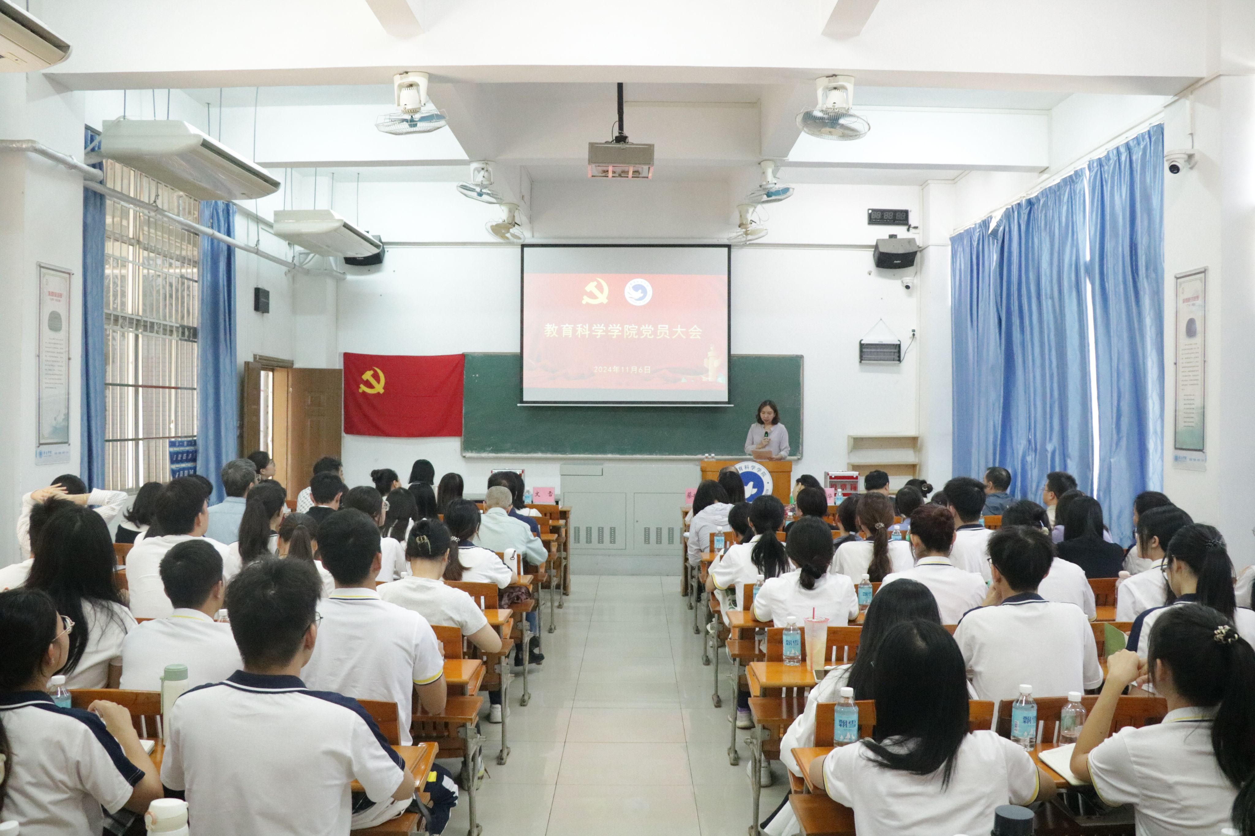 2024年11月6日,教育科学学院党员大会于第三教学楼106顺利召开。本次大会旨在总结过去的工作成绩和基本经验,明确今后的主要任务,并选举产生新一届党委委员。党委书记蔡振治、院长文雪、副院长曾苗苗出席会议,学院全体党员参会,党委副书记何秀华主持。