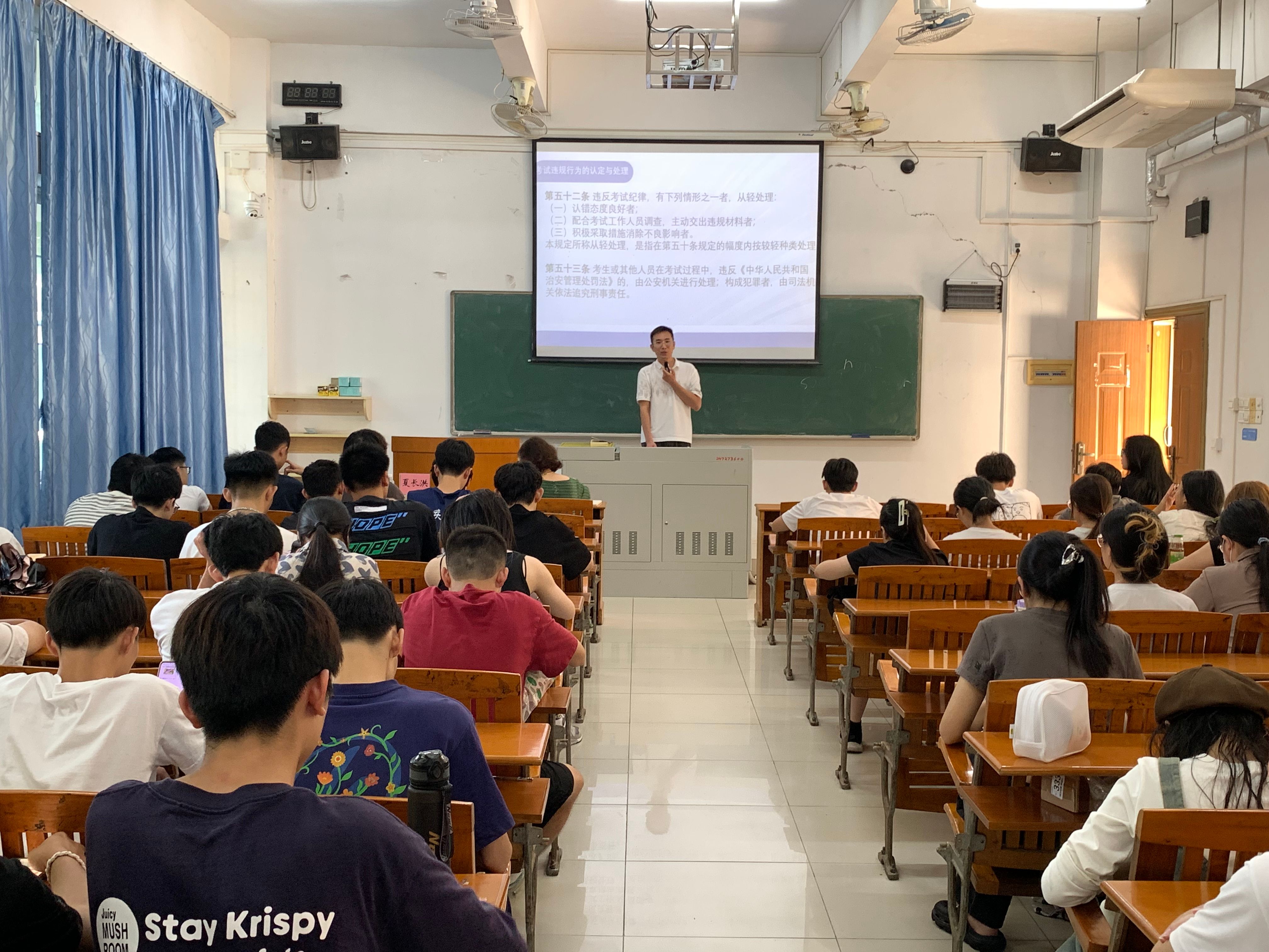 为加强学风建设,严肃考风考纪,2024年9月4日下午16点15分,我院于第三教学楼101室召开补考、缓考学生诚信考试动员大会。学院党委副书记何秀华、辅导员夏长洪出席,本次需要补考、缓考的学生参会。