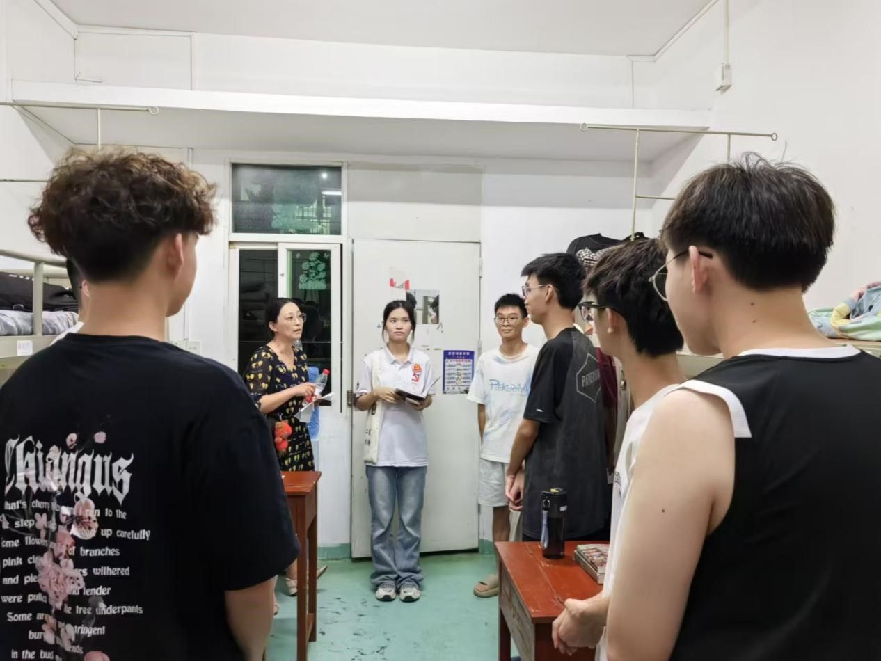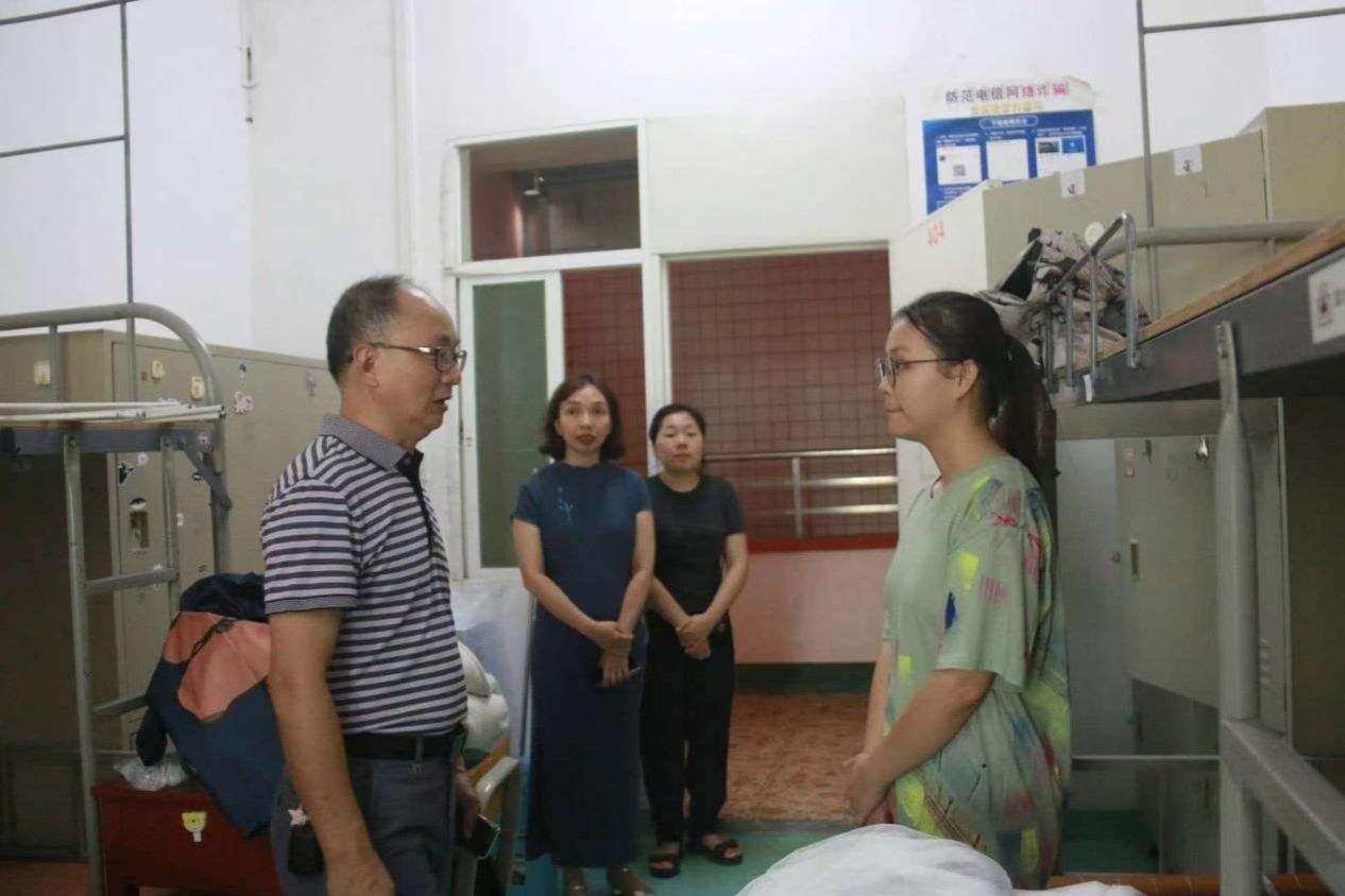当日晚上,学院领导、辅导员、班主任等深入新生宿舍,了解学生们的宿舍情况、入学适应情况,并对新生的衣食住行和入学教育安排进行叮嘱。