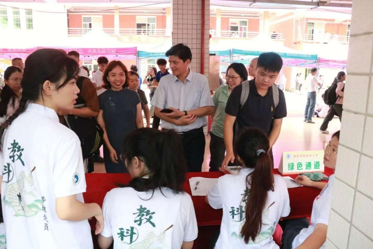校党委书记谢冠华、副书记欧洪湛、副校长胡文涛等学校及学院党委书记蔡振治、副书记何秀华等先后到达主校区及星湖校区的注册站点,他们亲切地慰问迎新志愿者和工作人员。随后,领导们深入走访新生宿舍,认真倾听新生及家长的心声,详细询问了新生们的生活状况和学习需求,确保他们能够顺利度过适应期。他们还特别关注了来自民族地区的学生,了解他们在新环境中的生活状况,并鼓励他们积极融入校园生活。领导们特别询问到因台风天气受灾的学生情况。