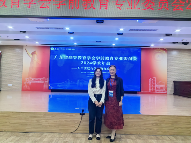 524日,广东省高等教育学会学前教育专业委员会2024学术年会在广东第二师范学院举行,会议主题为“人口变迁与学前教育改革”。教育科学学院教授、硕士研究生导师李晖受邀为会议做主旨报告,教育管理研究生叶洁玲一同参会。