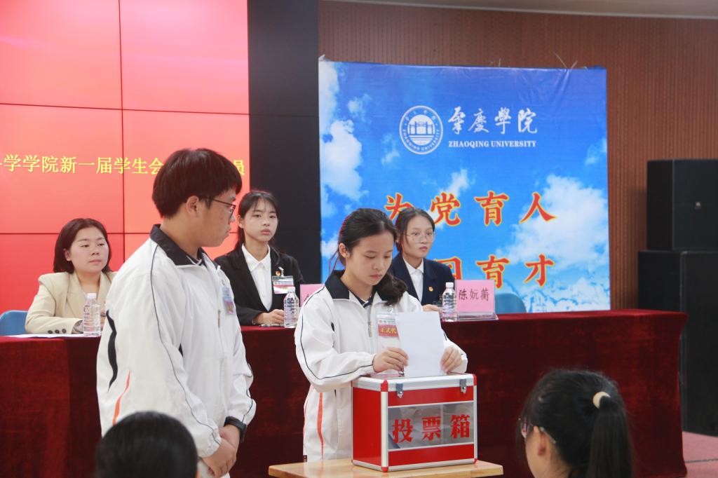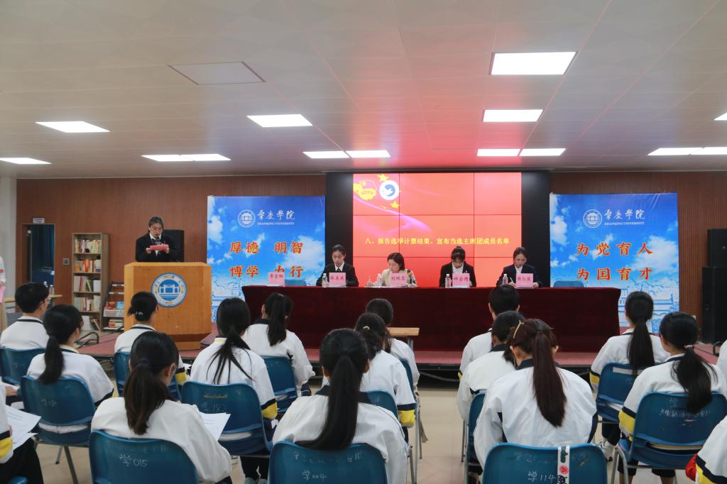 代表会议上,全体代表认真听取并审议通过了学院学生会委员会委员林美庆同学代表委员会作的工作报告,学院学生会主席团成员李言栩同学代表学院学生会作的工作报告,大会总监票人、监票人和总计票人、计票人建议名单,并民主选举产生了388vip太阳集团第六届学生会委员会和学生会主席团。温智林、梁天荣、钟金琦、林美庆、陈妧蘅担任学生会委员会委员,钟金琦、林美庆、陈妧蘅担任学生会主席团成员。