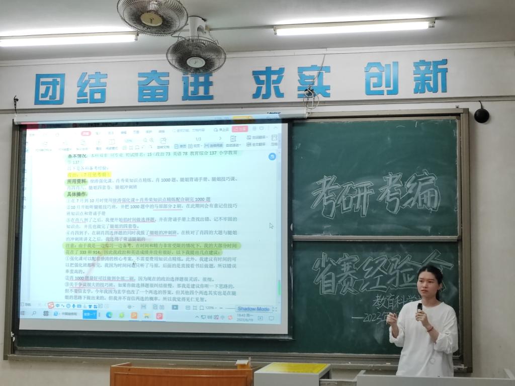 本网讯(通讯员/龚碧莹 责编/雷瑞虹)为帮助2021级的同学提前了解考研考编省赛的相关信息,更好地明确学业发展以及职业规划的目标,教育科学学院于6-7月特邀优秀毕业生开展考研考编省赛经验分享会,充分发挥了优秀校友的榜样引领作用。