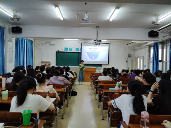 本网讯(通讯员/张云婷 责编/何秀华) 2023年6月7日下午,教育科学学院学前教育系在第二教学楼403课室开展了学前教育教师专业发展专题讲座。肇庆市外贸幼儿园园长藏兰荣担任主讲人,她为2020级学前教育专业166名同学开展了“往高处立 向深度行——爱与责任”的主题讲座。出席本次讲座的还有学前教育系主任陈姝娟、专任教师戴玉博士。
