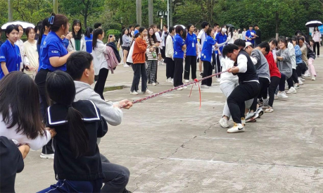 本次拔河比赛的主题是“力的较量,心的凝聚”。整个赛场上,同学们斗志昂扬,尽显青春活力。