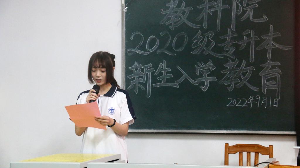 本网讯(通讯员/吴思瑶 李哲铭 责编/何秀华)2022年9月1日晚8点,教育科学学院于第二教学楼503课室举行2022年专升本新生入学教育大会。出席本次大会的有学院党委书记谢佐永、副书记刘远君、学前教育系主任陈姝娟、辅导员陈慧妍以及2020级学前教育专升本全体学生。
