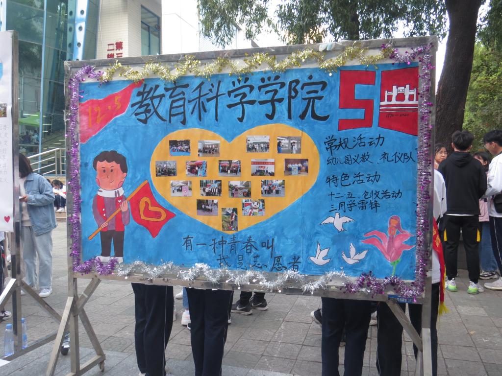 本网讯(通讯员/陈彦芸 拍摄/李丹纯)为践行社会主义核心价值观,激发莘莘学子志愿服务社会、彰显青春风采的热情,教育科学学院团委青年志愿服务部以“12.5国际志愿者日”为契机,积极开展志愿文化宣传活动。学院团委书记刘瑞雪老师出席了此次活动。