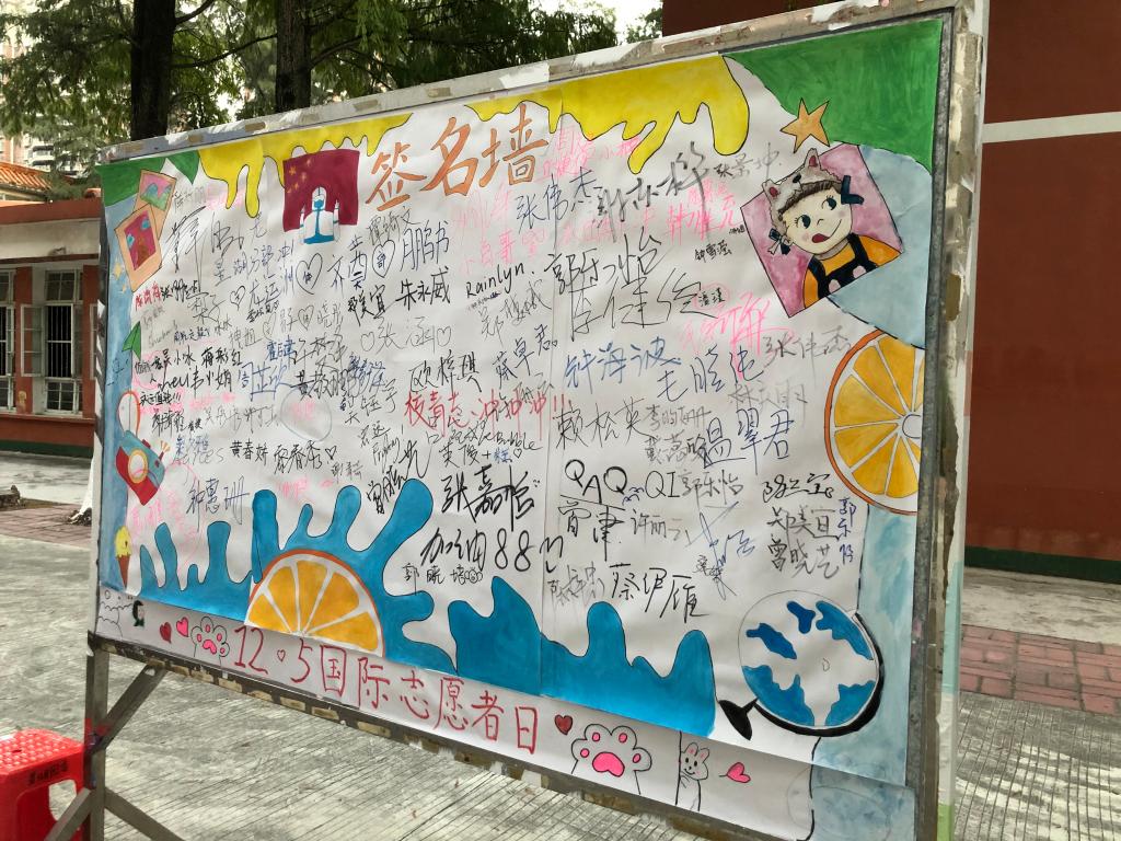 125,“12.5国际志愿者日”文化宣传展板在主校区紫荆校道展出。文化宣传展板以“有一种青春叫我是志愿者”为主题,设计巧妙,结合红飘带、志愿者标志和人物、肇庆学院五十周年校庆图标等元素,将幼儿园义教活动、社区创文活动等教育科学学院开展的特色志愿活动以宣传画的形式展出。该展板展示了教育科学学院特色志愿服务活动的风采,进一步激发砚园学子投身志愿活动的主动性,提升志愿者的使命感和光荣感。