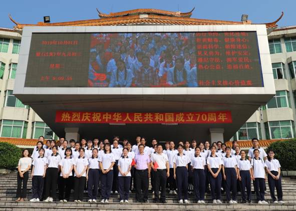 本网讯(通讯员詹妮)为进一步做好中华人民共和国成立70周年庆祝活动,营造祥和的校园氛围,结合“不忘初心、牢记使命”主题教育的工作安排,我校于2019年10月1日上午举行了“肇庆学院庆祝中华人民共和国成立70周年系列活动”。 学校领导、各二级学院党委书记、党委副书记出席,包括我院70多名学生在内的全校1200名学生代表参加了本次活动。