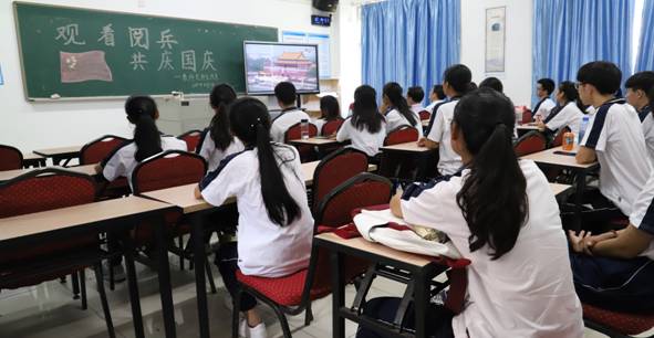 紧接着,我院党委书记谢佐永、党委副书记刘远君、团委书记刘瑞雪以及部分学生代表于第三教学楼312室观看了“庆祝中华人民共和国成立70周年大会”现场直播。在观看过程中,我院师生激情澎湃,为祖国的强大而自豪,为新中国七十年砥砺奋进、勇创辉煌的波澜壮阔之路而热泪盈眶。