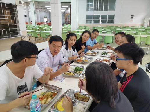 在学生饭堂的轻松环境下,吴副校长与同学一起同台就餐,边吃边聊,关心地询问同学的家庭、学习、生活等情况。吴副校长在与同学交流过程中从自身的求学经历,到学校的发展规划、国家的教育政策等话题发表个人的见解,勉励学生代表要注重美育、体育、劳动教育等方面的培养,提升自己的综合素质。
