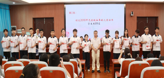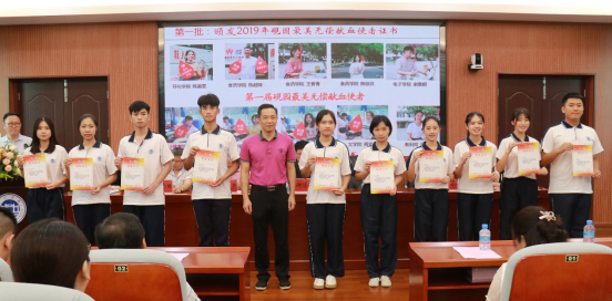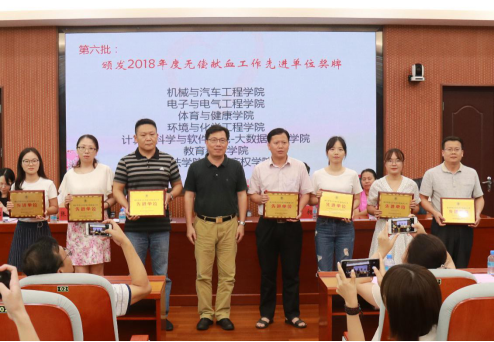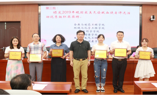 2019年6月20日,在第二会议召开的肇庆学院2019年无偿献血工作总结表彰大会,校党委副书记谢冠华、学生处处长陈向荣等领导及肇庆市无偿献血办领导以及肇庆市中心血站等领导出席。学院领导刘远君副书记代表学院上台授领先进单位奖。