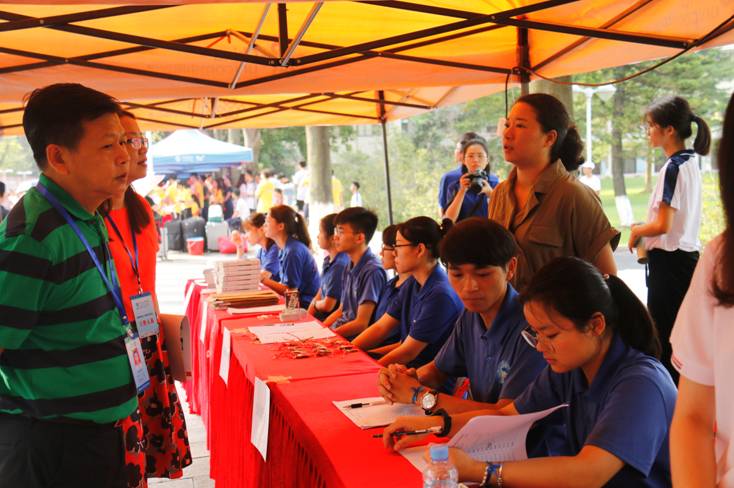 本网讯(通讯员 陈颖棋)砚园的九月,暖阳中夹杂着丝丝清风,97日上午,教育科学学院配合学校统一部署,正式启动2019迎新工作。本次迎新工作在主校区和星湖校区同时进行,共持续两天。在迎新期间,校党委书记曾桓松、校党委副书记黄劲松、谢冠华等学校领导,学生处处长陈向荣、副处长陈玉华,校团委书记陈前等职能部门领导,院党委书记谢佐永、院长张旭东、副书记刘远君等学院领导到教科院迎新接待点指导工作,学院辅导员、2019级新生带班党员、迎新志愿者志愿者积极配合,确保新生顺利入学报到。