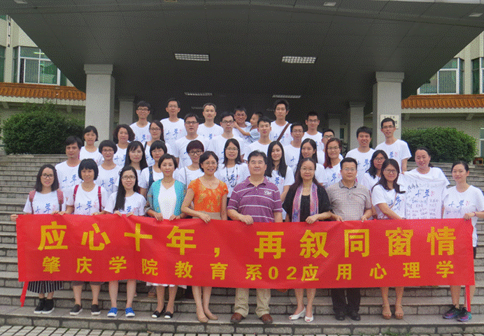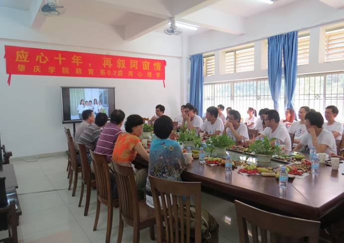 本网讯(记者黄佩珊)5月21日,教育科学学院02应用心理学本科班、03学前教育专科班共50多位校友在毕业十周年之际怀着激动的心情重聚母校,参加校友聚会和座谈会,重温师恩,共叙友情。学院党委书记徐杰、原学院院长(现校档案馆馆长)梁婉倩、原学院副院长(现校继续教育学院院长)黄曼娜、学院党委副书记刘远君、副院长文雪及罗京滨、李晖、慕容勋等相关任课教师参加了本次交流会。当晚,在外出差的张旭东院长、李炳全副院长也专程赶回学校与校友们相聚。