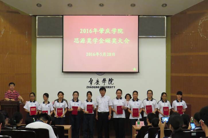 网讯(记者凌小媛 马晓玲)砚园五月,喜报佳绩。528日下午330 2016年肇庆学院思源奖学金颁奖大会在图书馆学术报告厅举行。肇庆学院党委副书记叶峥嵘、教育发展基金会理事长兼基建处处长沈钦萍、教育发展基金会副理事长兼秘书长钟伙彬、教育科学学院党委书记徐杰、院长张旭东、副院长文雪、副书记刘远君等领导出席了本次大会。