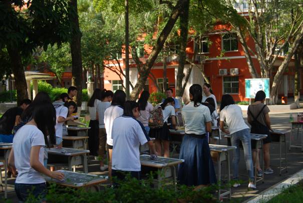 为加强学风建设,营造浓厚的学习氛围,全面推进素质教育,进一步提高学生的综合素质,由校团委主办,教育科学学院承办的“星湖杯”粉笔字大赛于2015年6月3号下午在星湖校区兰蕙湖边的校道上举行。出席本次比赛的领导有星湖校区管理办公室主任余淦新,教育科学学院党委副书记刘远君,校团委办公室主任杨琼老师等。