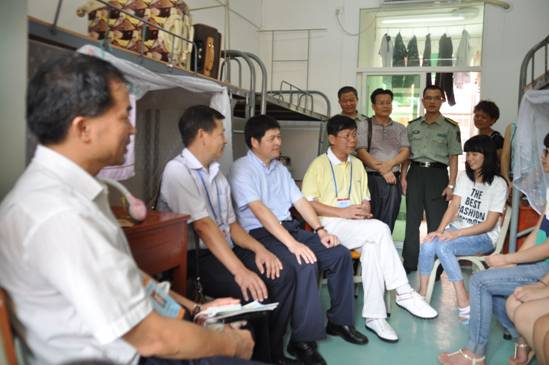 校党委书记曾桓松、校长和飞、校党委副书记叶峥嵘、校党委副书记、纪委书记黄劲松、学生处处长陈向荣、后勤处处长慕容居敏、教科院党委书记徐杰、院长张旭东、党委副书记刘远君、副院长李炳全等领导也先后在主校区和星湖校区了解我院新生的报到和思想情况,并亲切慰问志愿者和工作人员。领导们还亲自走访新生宿舍、食堂并慰问新生。