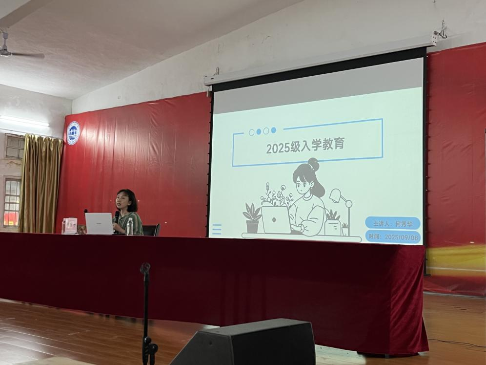 本网讯(通讯员/姚子敏 责编/陈慧妍)为帮助2025级新生尽快适应大学环境,明确专业方向与成长目标,2025年9月8日至9日,教育科学学院在星湖小礼堂顺利开展2025级新生入学教育系列讲座。学院党委副书记何秀华、副院长曾苗苗、黄华以及辅导员陈慧妍分别担任主讲,2025级全体新生参加本次教育活动。