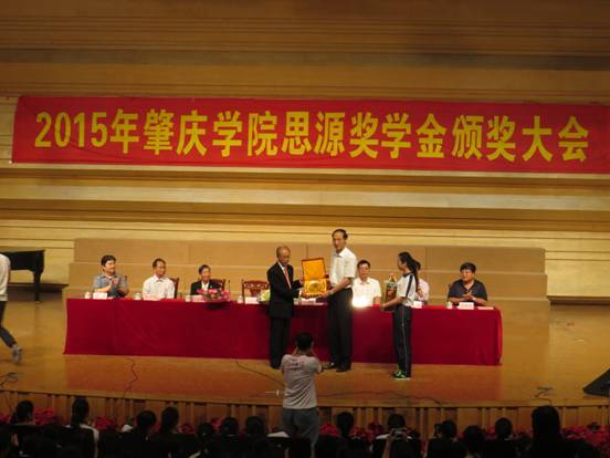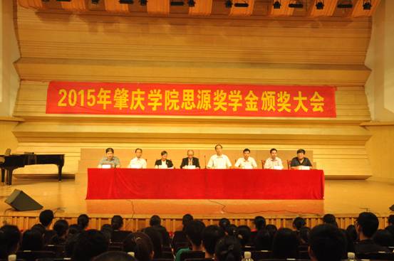 本网讯(通讯员 卓晓玲 吴旭辉 许奕然)5月24日下午,肇庆学院2015年思源奖学金颁奖大会在陈熹音乐厅隆重举行。香港思源基金会顾问黎应锦先生、黎梁淑芷女士、肇庆学院校长和飞、肇庆学院教育发展基金会理事长黎强、肇庆学院教育发展基金会副理事长兼任秘书长刘东廷、肇庆学院教育发展基金会副理事长钟伙彬、教育科学学院院长张旭东、教育科学学院副院长文雪、教育科学学院党委副书记刘远君和教育科学学院全体班主任、辅导员及学生代表共400多人出席了本次颁奖大会。