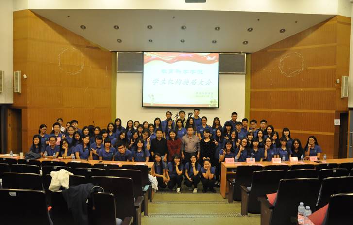 流金的岁月送走了一批优秀的学生干部,然而教科院的血脉仍生生不息。在领导、老师们为2014-2015学年学生机构干部颁发聘书后,团委书记何秀华宣读了《学生干部任命决定》。机构新一任负责人代表卓晓玲在发言中倡议学生干部要树立责任、协调及团队意识,积极为同学服务。