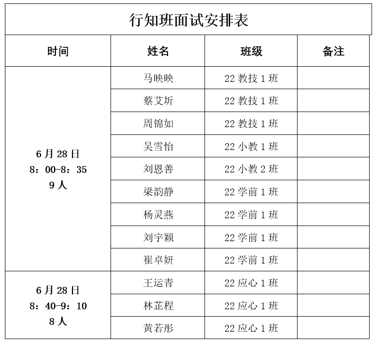 经学院对教育科学学院第一期卓越教师“行知班”报名表的审核,确定最终进入面试的学生名单。现将招生面试通知如下: