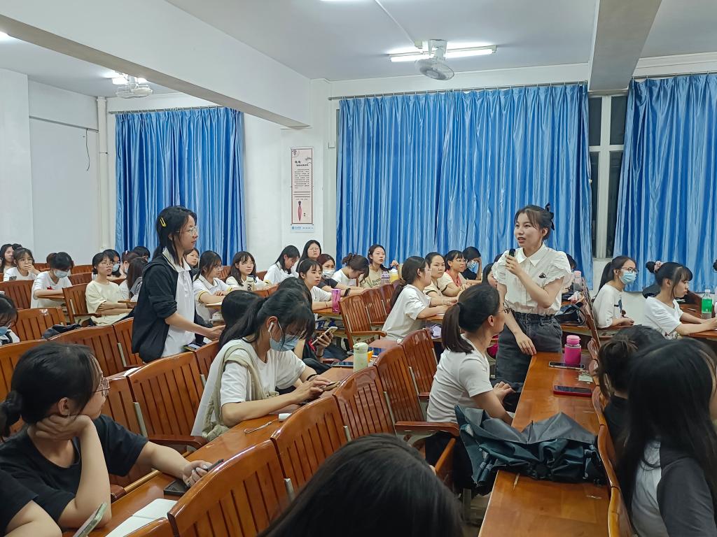 (通讯员/谢玉庆 潘钰欢 责编/何秀华)2023年5月19日晚上1900-2200,教育科学学院学前教育专业学生党支部在第二教学楼403教室开展了“吸纳成功经验,涵养进取品格”主题党日活动暨考研、就业、援疆、省赛经验交流会。2019级学前教育专业文嘉琳、李钰、柯晓纯、袁杰、王梓博、吴静慧受邀进行分享,学前教育专业学生党支部书记何秀华出席,20级学前教育专业学生党员及各年级学生共110余人参加分享会。