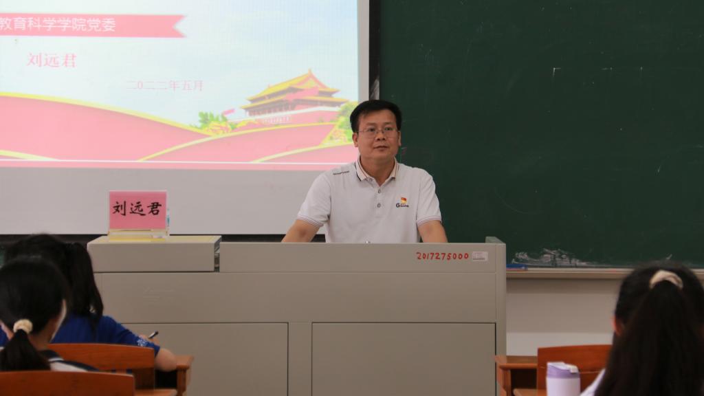 本网讯(通讯员/梁莹莹 责编/何秀华)5月11日下午,教育科学学院学习贯彻习近平总书记在庆祝中国共产主义青年团成立100周年大会重要讲话精神暨入党积极分子培训会在第三教学楼505教室召开,学院党委副书记刘远君担任主讲人。