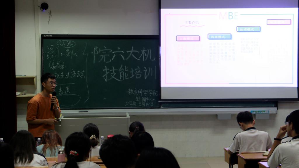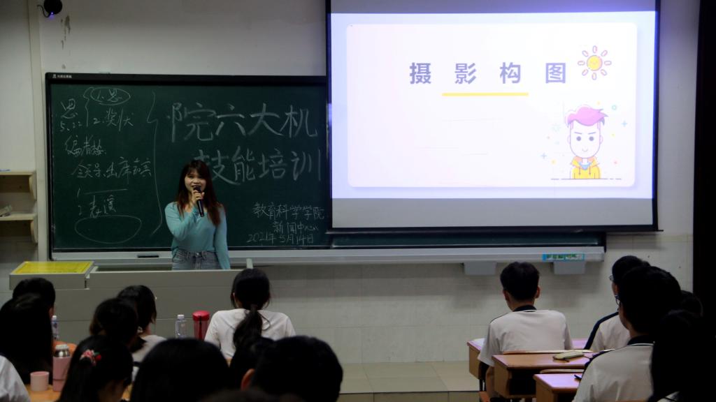 本网讯(通讯员/张云婷 责编/何秀华)为提升我学院学生干部的新媒体运作水平,提升学院新媒体的正向传播力量,在学校宣传部的支持下,2021年5月14日晚7点,教育科学学院新闻中心在星湖校区17栋103室开展新媒体文稿及摄影技术培训。18级小学教育2班阙玮奇、校新闻中心文编部干事刘源、校新闻中心美编部副部长王瑾瑾、校新闻中心摄制部副部长罗俊涛、校新闻中心摄制部部长廖惠婷担任本次培训活动的主讲人,学院六大机构共60余名学生干部参加本次培训。