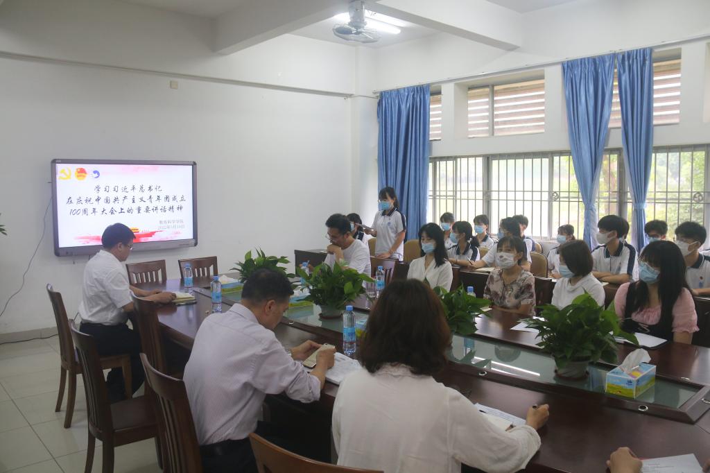 510晚上,教育科学学院组织青年师生开展座谈会,认真学习习近平总书记在庆祝中国共产主义青年团成立100周年大会上的重要讲话精神。教育科学学院团委书记梁少辉出席本次座谈会。