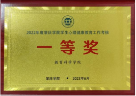 2022年度肇庆学院学生心理健康教育工作考核一等奖 |
