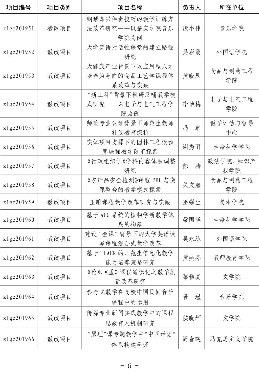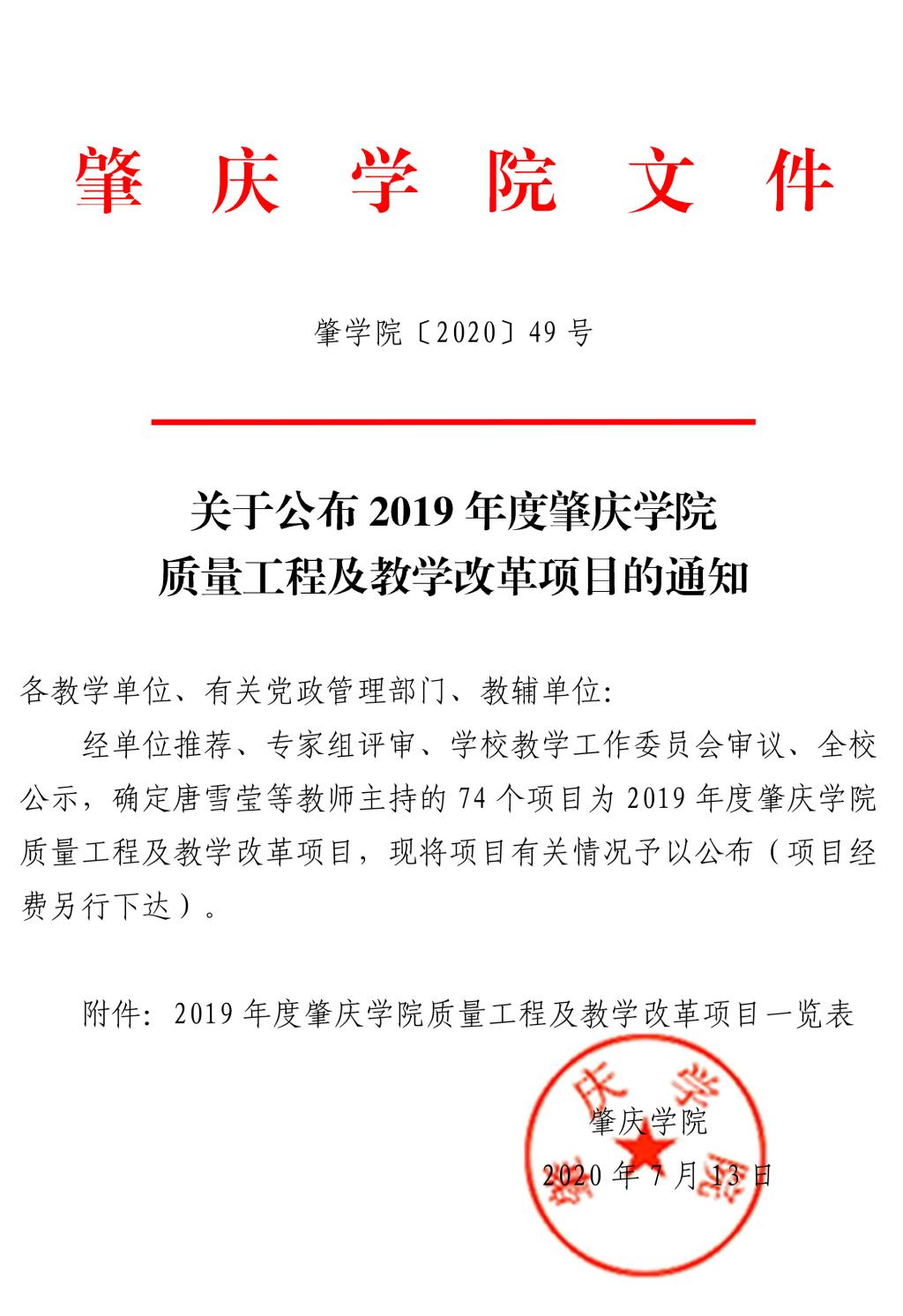 肇学院〔2020〕49号关于公布2019年度肇庆学院质量工程及教学改革项目的通知.pdf