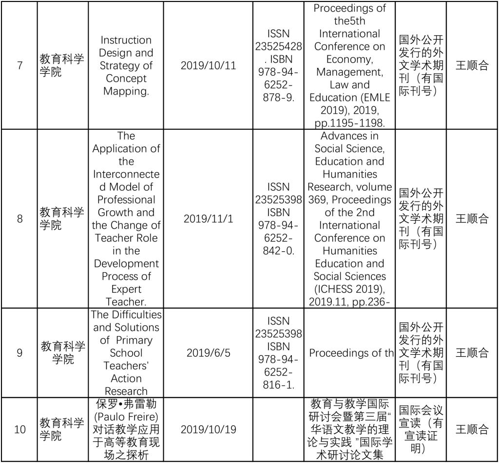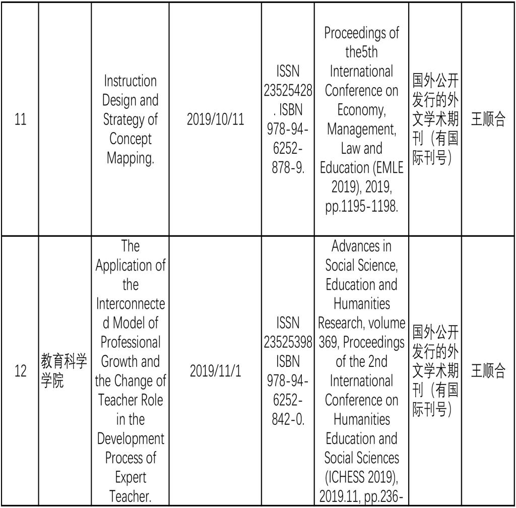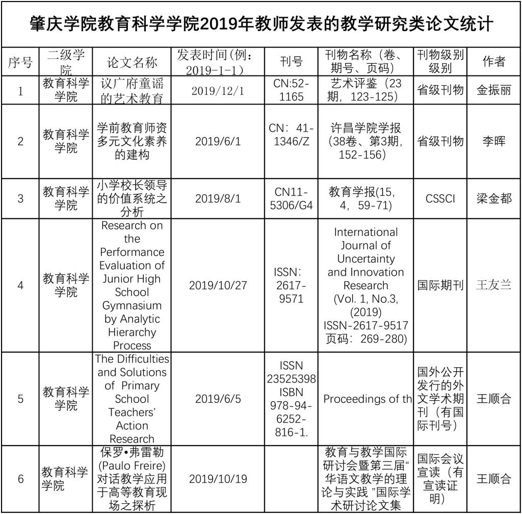 388vip太阳集团2019年教师发表的教学研究类论文统计